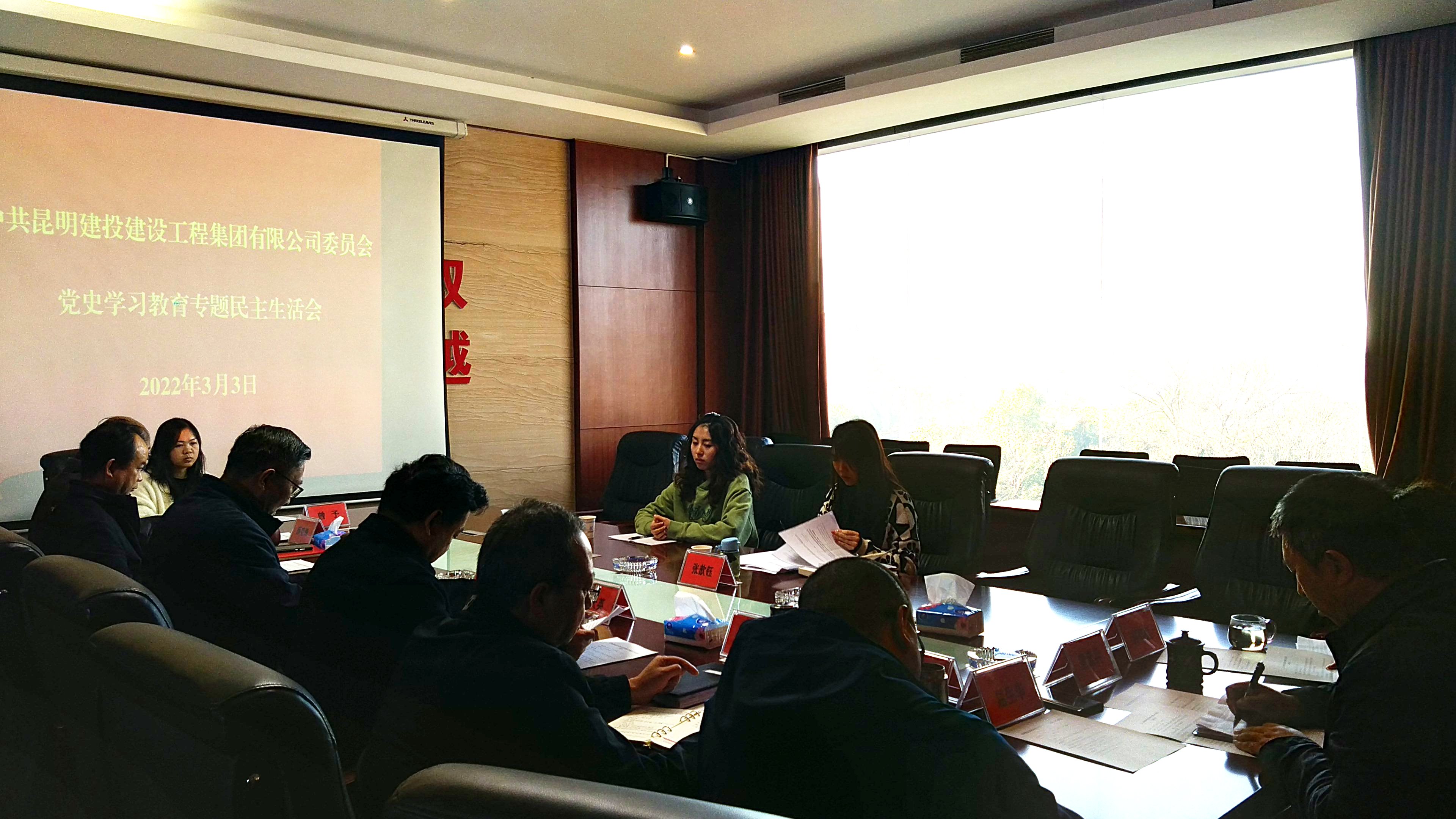 根據《中共昆明建投建設工程集團有限公司委員會黨史學習教育專題民主生活會方案》,2022年3月3日上午9:30,公司黨委在公司416會議室召開黨史學習教育專題民主生活會。會議由公司黨委書記邢馬華主持,公司黨政領導班子成員參加會議,黨群工作部、紀檢監察室人員列席會議,昆明交投黨委第三督導組張歆鈺同志等到會指導。